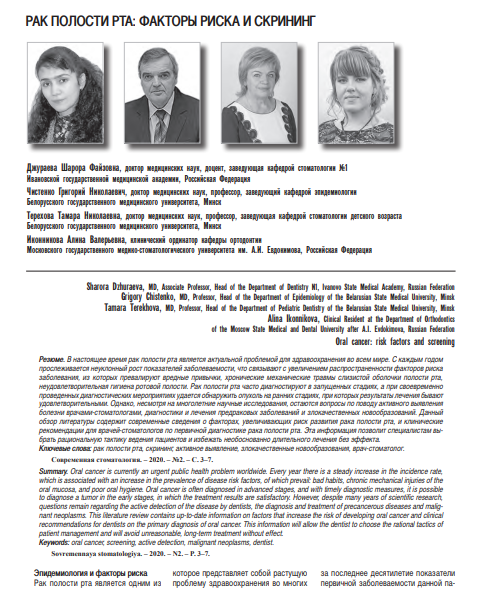РАК ПОЛОСТИ РТА: ФАКТОРЫ РИСКА И СКРИНИНГ