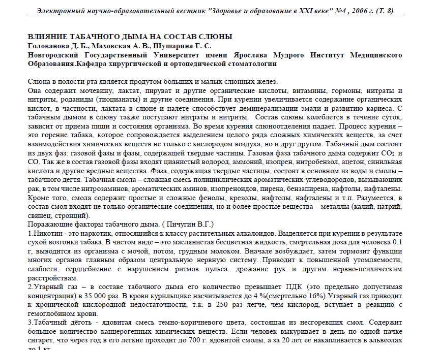 ВЛИЯНИЕ ТАБАЧНОГО ДЫМА НА СОСТАВ СЛЮНЫ