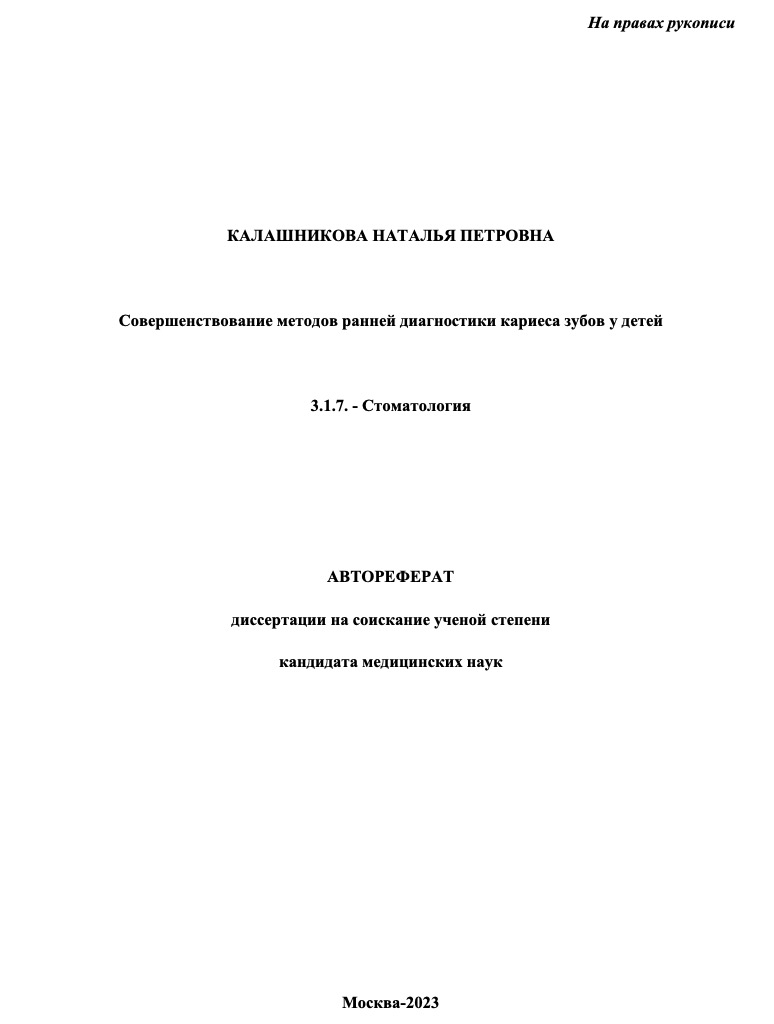 Калашникова Н.П. Совершенствование методов ранней диагносткии кариеса зубов у детей