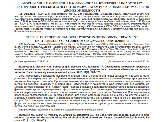 Ключевые слова: зубочелюстные аномалии, профессиональная гигиена, цитокины.