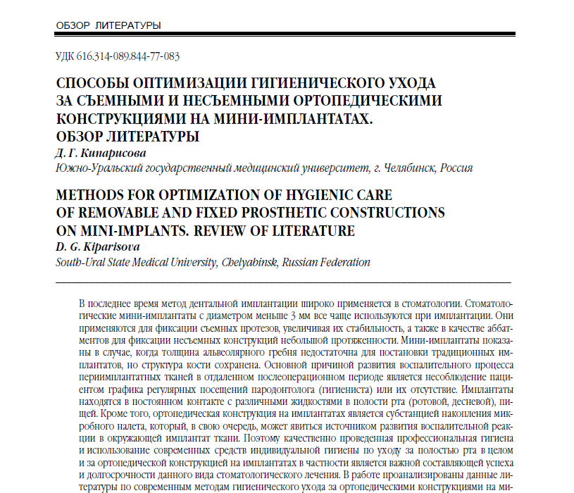 СПОСОБЫ ОПТИМИЗАЦИИ ГИГИЕНИЧЕСКОГО УХОДА ЗА СЪЕМНЫМИ И НЕСЪЕМНЫМИ ОРТОПЕДИЧЕСКИМИ КОНСТРУКЦИЯМИ НА МИНИ-ИМПЛАНТАТАХ. ОБЗОР ЛИТЕРАТУРЫ