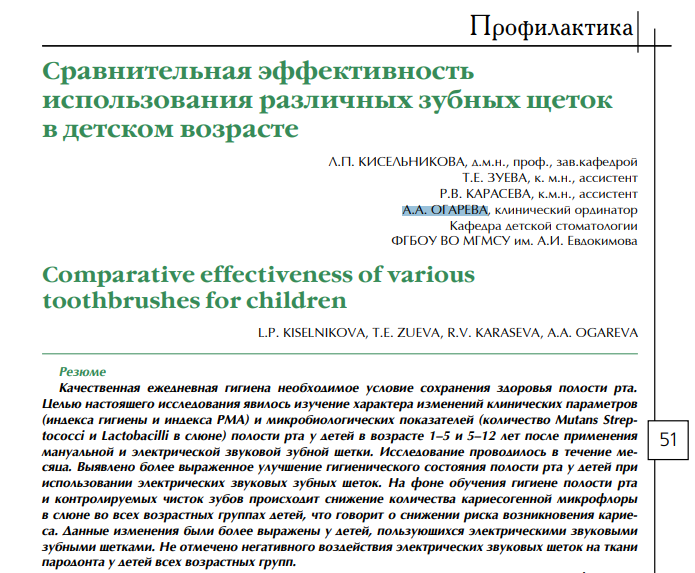 Электрические зубные щетки можно применять у детей, однако исследования по эффективности и безопасности применения специализированных детских электрических зубных щеток в России немногочисленны.