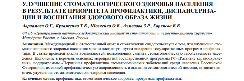 УЛУЧШЕНИЕ СТОМАТОЛОГИЧЕСКОГО ЗДОРОВЬЯ НАСЕЛЕНИЯ В РЕЗУЛЬТАТЕ ПРИОРИТЕТА ПРОФИЛАКТИКИ, ДИСПАНСЕРИЗАЦИИ И ВОСПИТАНИЯ ЗДОРОВОГО ОБРАЗА ЖИЗНИ - библиотека стоматологического колледжа №1
