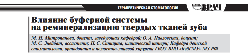 ВЛИЯНИЕ БУФЕРНОЙ СИСТЕМЫ НА РЕМИНЕРАЛИЗАЦИЮ ТВЕРДЫХ ТКАНЕЙ ЗУБА