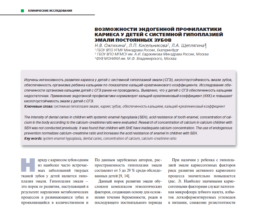 3. Алексеева И.А. Кисельникова Л.П., Щепля-гина Л.А. Оценка обеспеченности кальцием детей подросткового возраста с высокой активностью кариеса. Российская стоматология. 2013;6(2):31–4.