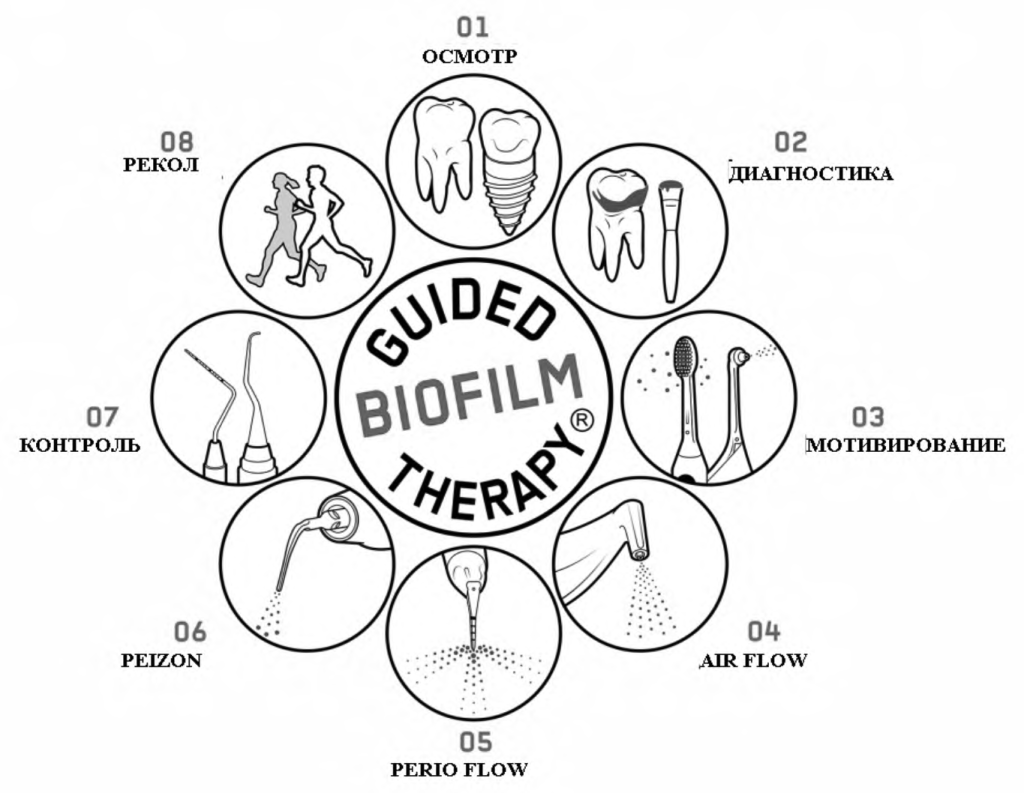 | Протокол «Guided Biofilm Therapy» | Дополнения к протоколу «Guided Biofilm Therapy» в части профилактики мукозитов и периимплантитов |